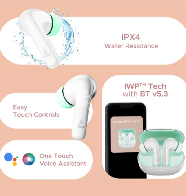 boAt Airdopes 155 w/ 40H Playtime, In-Ear Detection & Quad Mics w/ ENx Tech