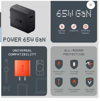 - POWER OUTPUT: 65W GaN fast charging adapter with three ports - dual USB Type-C and one USB Type-A port for simultaneous charging of multiple devices