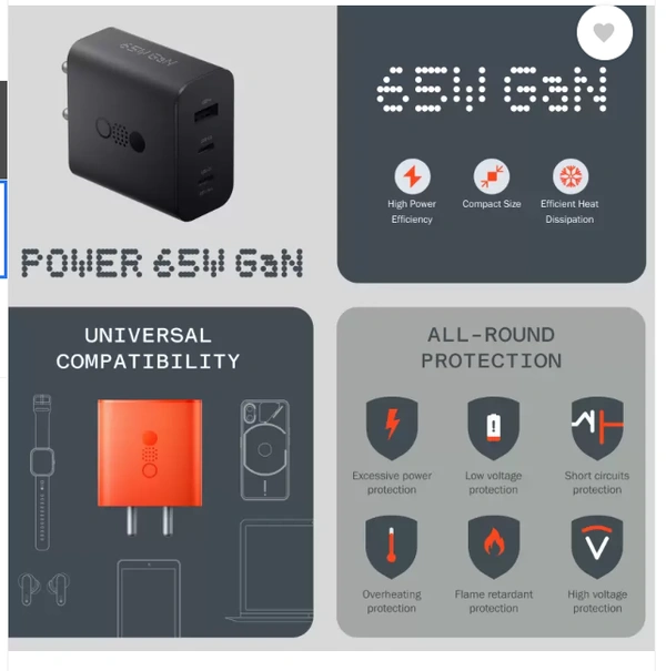 CMF by Nothing 65 W GaN 3 A 3 Port Mobile Charger
