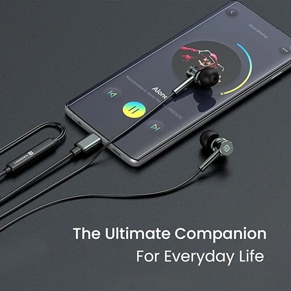 Portronics Conch Tune C in Ear Type C Wired Earphones with Mic,10mm Driver, 1.2m Nylon Braided Anti Tangle Wire, in line Controls, Metal Alloy Body, Wide Compatibility